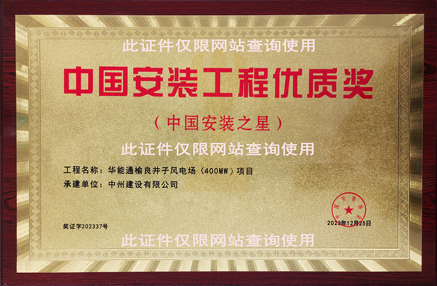 國優(yōu)證書:國家電投封丘陳橋驛風電項目