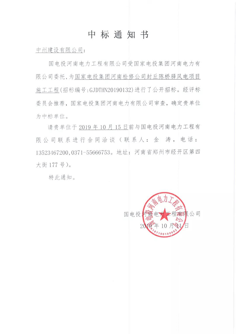 三、  國家電投集團河南檢修公司封丘陳橋驛風(fēng)電項目施工工程,中標金額7090.4194萬元。